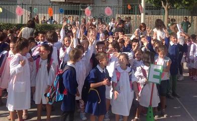 Il primo giorno di scuola è sempre una festa di colori e musica e tante emozioni: una mattinata in allegria è il miglior modo per iniziare un nuovo anno scolastico. La campanella delle 8.15 ha segnato l’inizio dell’anno scolastico per gli alunni delle classi della scuola primaria e dell’infanzia che sono stati accolti dai docenti nel giardino della scuola coloratissimo grazie ai murales "giocare per conoscere" del progetto “Aperti per ferie”, inaugurando così il nuovo anno scolastico.