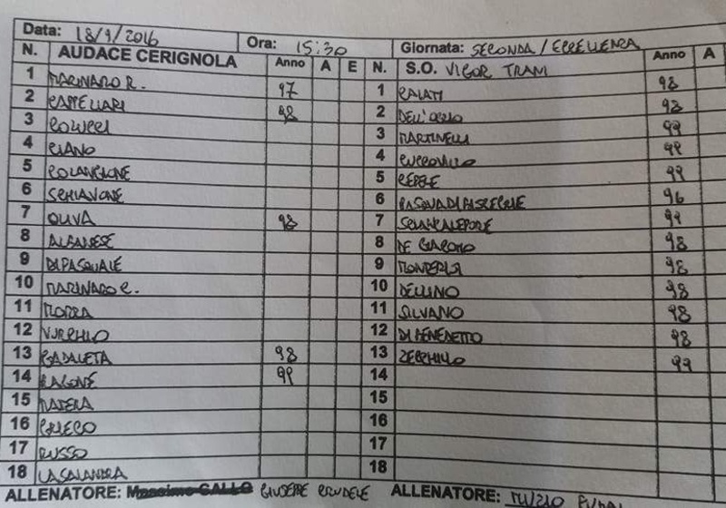 Come già riferito stamani, il pullman per portare il Trani a Cerignola è regolarmente arrivato, ma su quel bus sono saliti soltanto 13 giocatori, quelli che poi sono stati schierati nella distinta, 11 dei quali in campo, da Muzio Fumai, in una partita iniziata in maniera surreale ma terminata, almeno, con la certezza di avere onorato la maglia.