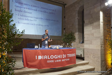 Ad aprire la quarta giornata dei Dialoghi di Trani vi sarà, anche stamani, l'«Edicola con caffè lettura dei quotidiani con l'autore». Lucia De Mari, della Gazzetta, intervisterà uno dei protagonisti dei Dialoghi di ieri sera, lo scienziato Marco Drago. A seguire, al castello, il laboratorio «Compagni di viaggio», con Stefano Cialdella, Michele Galgani, Luisa Marino, Maria Grazia Misuriello. Il primo dialogo al castello è previsto alle 10, su «Ambiente, patrimonio comune», con Rossano Ercolini, Mimmo Santorsola e Giorgio Zanchini. A mezzogiorno, «La nascita imperfetta delle cose. La grande corsa alla particella di Dio e la nuova fisica che cambierà il mondo», con Guido Tonelli, nella sala Federico II del castello.