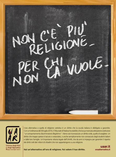 È a firma di Giuseppe F. Ruggieri, coordinatore del circolo Uaar (unione atei agnostici razionalisti) della Bat, la lettera inviata ad i dirigenti scolastici della provincia nella quale l’associazione, tra i cui obiettivi principali c’è quello della garanzia della laicità delle istituzioni, scrive di aver registrato come «non tutte le scuole abbiano attivato in tempo le attività alternative all'insegnamento della religione cattolica, dando luogo a situazioni illegali che durante l'anno scolastico passato abbiamo stigmatizzato e in alcuni casi denunciato alle autorità competenti. Situazioni discriminatorie come queste non trovano alcun sostegno nella giurisprudenza vigente, che anzi esplicitamente le condanna ribadendo il diritto all’ora alternativa».