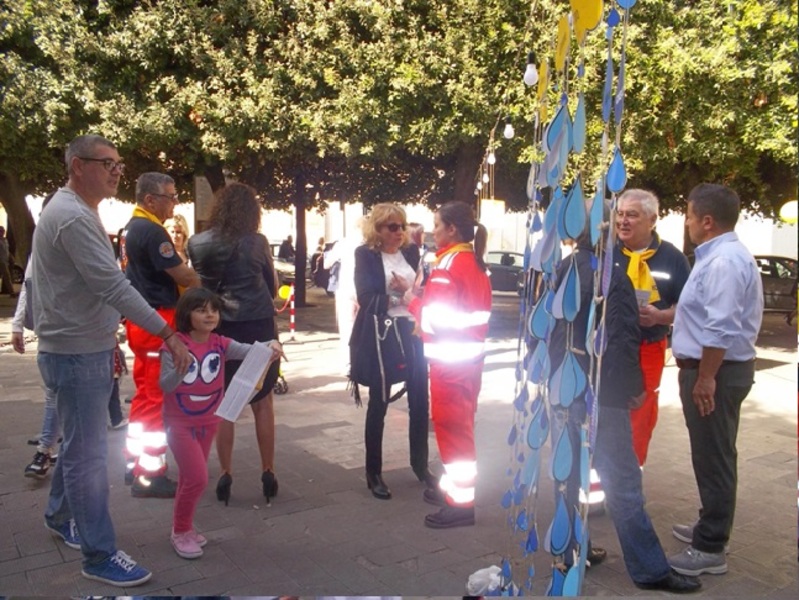 Lo splendido clima domenicale e la cornice offerta dalla meravigliosa piazza della Repubblica hanno consentito, insieme all’effetto scenografico dei gazebo realizzati con colori, cartelloni, indicazioni posizionate sul suolo, di attirare l’attenzione di famiglie e gruppi di persone di ogni età, dal bambino all’anziano, interessate a conoscere l’evento e raccogliere utili informazioni. È stato possibile accogliere tutti utilizzando strumenti comunicativi, come la tenda alluvione e la linea del tempo (realizzati dai volontari grazie alle indicazioni fornite dai formatori e dal sito ufficiale http://iononrischio.protezionecivile.it) e per i più piccoli con la distribuzione di palloncini e gadget con il logo della campagna. L’entusiasmo trasmesso da parte degli operatori può rispecchiarsi nella partecipazione attiva dei cittadini, intervenuti con domande e curiosità, dimostrando di aver colto l’importanza di conoscere le buone pratiche di protezione civile per il rischio alluvione. I sorrisi, il calore, l’affetto riversato in questa giornata da parte di volontari e cittadini è il segno tangibile del raggiungimento degli obiettivi di questa campagna, ovvero la diffusone del messaggio: