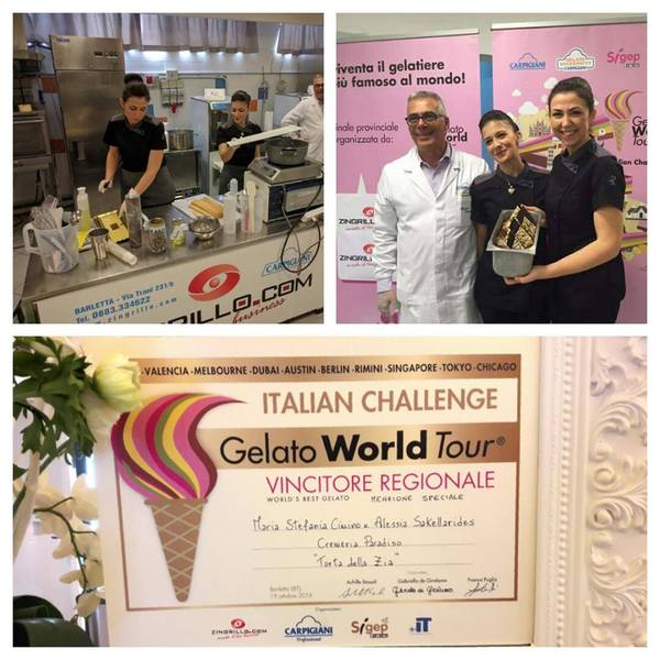 Sono state Maria Stefania Cimino e Alessia Sakellarides, titolari della “Cremeria paradiso” di Trani, in corso Vittorio Emanuele, con il loro gusto “la torta della zia”, ad aggiudicarsi la menzione speciale del “Gelato world tour italian challenge”, per il doppio appuntamento barlettano che si è tenuto nei giorni scorsi.