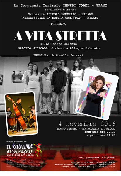 Subito, però, i ragazzi sono tornati al lavoro: infatti, il 4 novembre verrà portata in scena a Milano, presso il teatro “Delfino”, l’opera teatrale che ha aperto il festival “Il giullare 2016”, dal titolo “A vita stretta”, scritta e diretta da Marco Colonna.