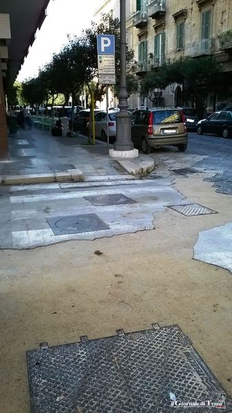 È il caso, per esempio, di quelle che insistono su via Mosè da Trani, all’intersezione con via Cavour, in cui, oltre alle strisce, manca l’asfalto, risultato, forse, di precedenti lavori alla condotta fognaria.