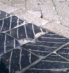 In effetti, il basolato, in alcuni punti, sta cedendo in modo vistoso, benché lo stesso sia stato, esattamente un anno fa, oggetto di manutenzione, peraltro gratuita. Tuttavia, l’iniziativa (posta in essere, appunto, a spese di un imprenditore, che non volle farsi pubblicità), ancorché lodevole, non ha prodotto effetti duraturi, come è possibile evincere dalle foto.