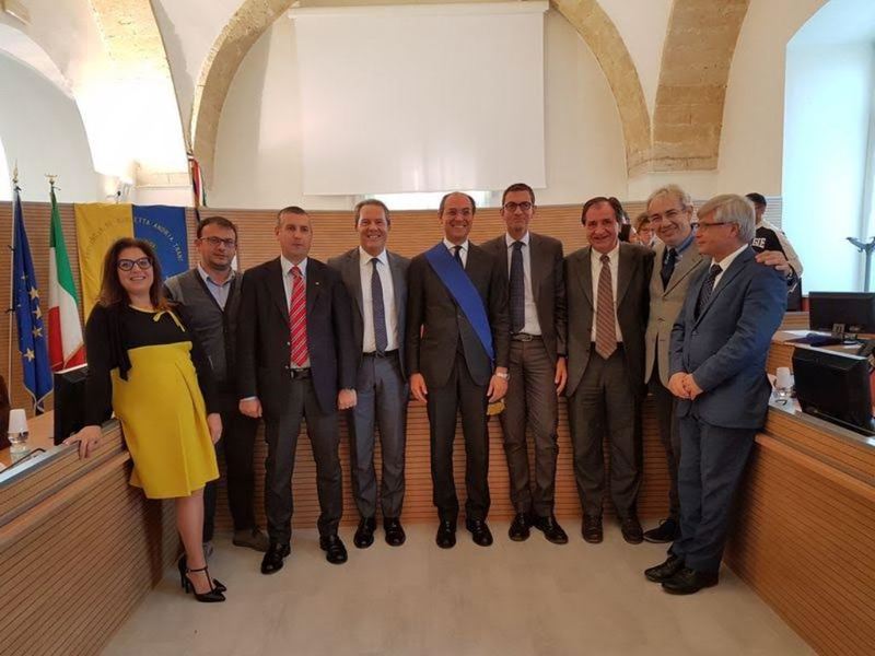 Il sindaco di Andria Nicola Giorgino ha giurato questa mattina da presidente della Provincia di Barletta - Andria - Trani, nel corso della prima seduta del nuovo consiglio provinciale. Dell’assemblea fanno parte gli altri nove sindaci del territorio: Pasquale Cascella (Barletta), Amedeo Bottaro (Trani), Francesco Carlo Spina (Bisceglie), Ernesto La Salvia (Canosa di Puglia), Paolo Marrano (Margherita di Savoia), Maria Laura Mancini (Minervino Murge), Michele Lamacchia (San Ferdinando di Puglia), Michele Patruno (Spinazzola) e Francesco Di Feo (Trinitapoli). Il presidente Nicola Giorgino ha poi ratificato le nomine di vice presidenti della Provincia ai sindaci di Trani e Bisceglie, rispettivamente Amedeo Bottaro e Francesco Spina.