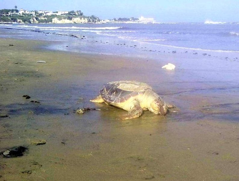 La carcassa di una grossa tartaruga marina si è arenata, nel pomeriggio di sabato scorso, sulla battigia del lido Matinelle.