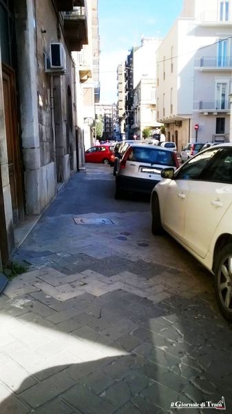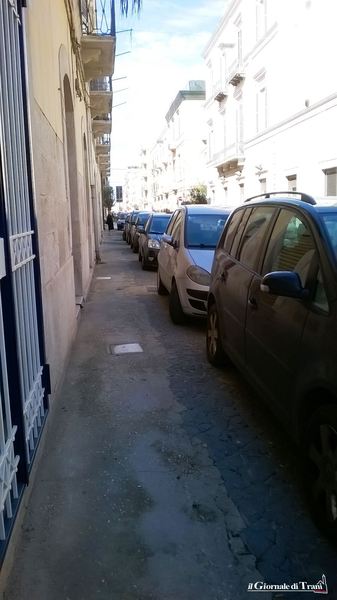 Il posizionamento dei veicoli sul marciapiede è anche forzato: infatti, come da noi già fatto rilevare, se gli automobilisti parcheggiassero normalmente sulla carreggiata, non vi sarebbe spazio sufficiente per il transito al centro. Ed il paradosso è che sostano con le ruote sul marciapiede coloro che pagano il grattino, trattandosi di lato riservato al parcheggio al pagamento.