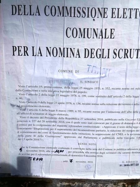 Dunque, nel rispetto del testo del manifesto fatto affiggere nei giorni scorsi, oggi si sono designati i 164 componenti delle sezioni elettorali (tre per ciascuna, altri quattro per le due speciali delle case di reclusione ed uno per il «seggio volante» ospedaliero) con il criterio telematico.