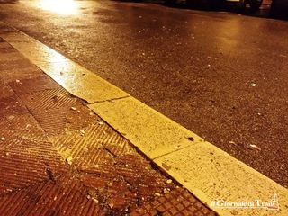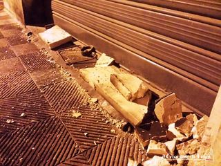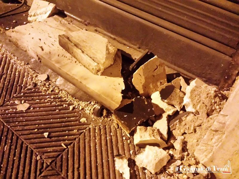 L'ordigno ha fatto cadere una parte dello stipite lapideo della serranda e creato un buco sulla pavimentazione, mentre la saracinesca sembra sia rimasta integra. I frammenti di pietra sono stati scagliati a centro strada ed un paio sono arrivati sul marciapiede di fronte.