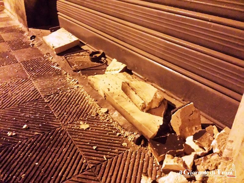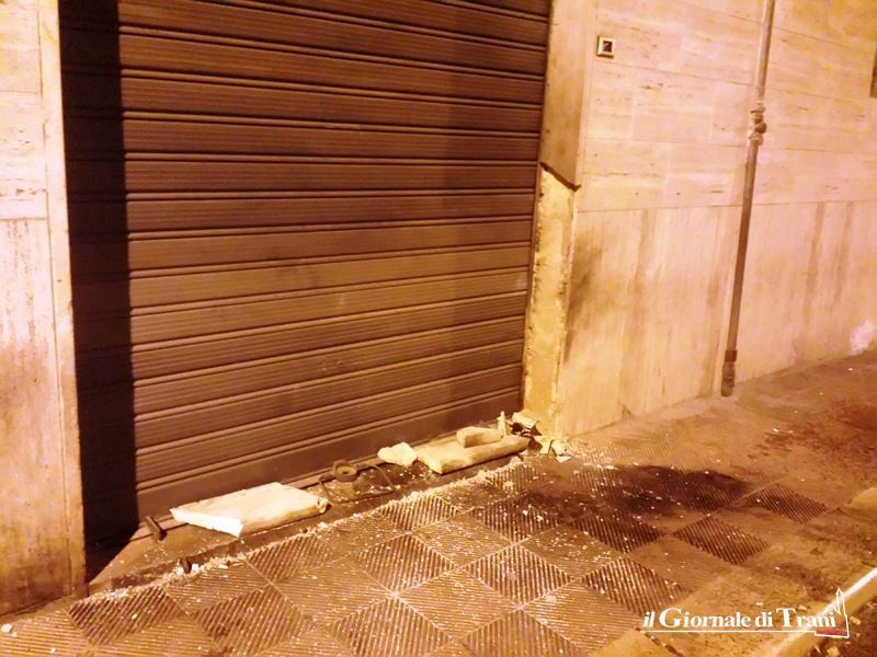 La nottata tranese è stata nuovamente scossa da un boato, che si è udito in buona parte del centro abitato. È accaduto all'1.15 e questa volta, ad essere preso di mira, è stato un locale al civico 14 di via Francesco Ferrara (strada del quartiere di via Andria alle spalle della cosiddetta «pinetina», denominata piazza Papa Giovanni Paolo II), all'intersezione con via Francesco Sarlo.
