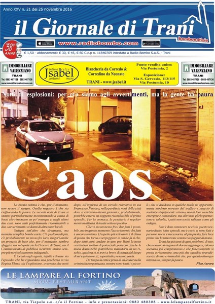 «Caos». Da questo titolo parte il nuovo numero de «Il giornale di Trani», in edicola a 1 euro e 50.
