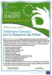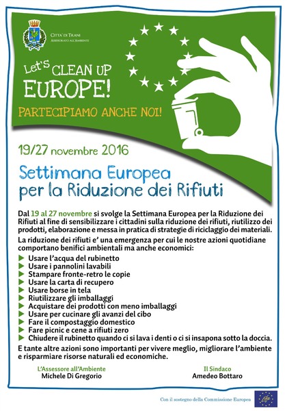 Si celebra anche quest’anno la settimana europea per la riduzione dei rifiuti (SERR) che si terrà dal 19 al 27 novembre 2016. In concomitanza con l’evento, l’Amministrazione pone l’accento sulle buone pratiche ambientali, sensibilizzando i cittadini sulla riduzione dei rifiuti ed al riutilizzo di beni e prodotti. Contestualmente, l’Amministrazione invita i cittadini a rispettare le indicazioni relative al conferimento dei rifiuti in città.