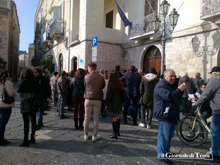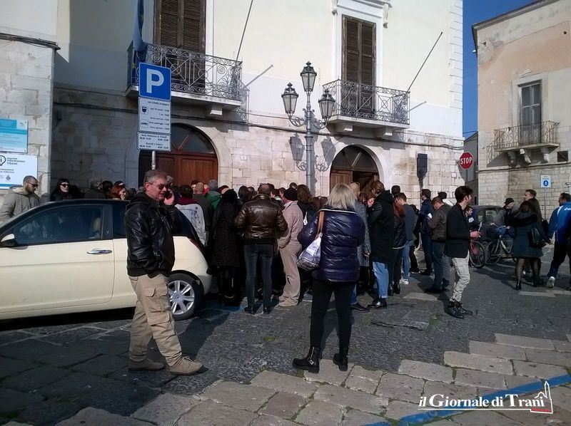 Le foto che alleghiamo a corredo di queste poche righe è stata scattata intorno alle 10, prima ancora che iniziasse il casting per le comparse del film le cui riprese saranno prossimamente girate anche a Trani. Decine e decine di persone in coda per un posto al sole simbolico, oltre quello reale che, per fortuna, sta caratterizzando la giornata odierna rendendo meno rigida la temperatura dell'attesa.