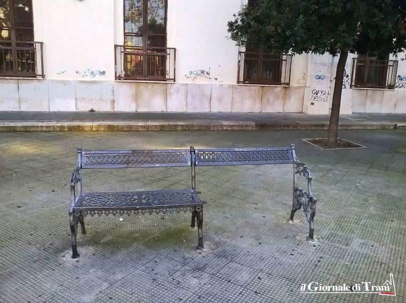 Infatti, nel primo caso, una delle due panchine collocate di fronte alla sede centrale delle Poste non ha più lo schienale, cosicché sedersi risulta malagevole o pericoloso. Nel secondo, invece, a ben due panchine manca addirittura la panca su cui sedersi, o meglio, una ne è priva per metà, l'altra del tutto.
