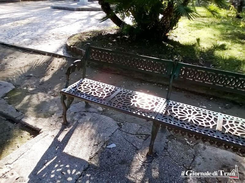 Diverso, invece, è il caso delle panchine della villa comunale, che ormai risentono in modo evidente del tempo e della vicinanza al mare: quasi tutte presentano le decorazioni sotto i sedili divelte, del tutto o in parte, mentre alcune sono intaccate dalla ruggine.