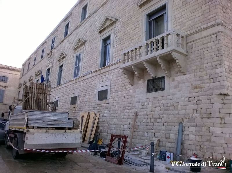 Infatti, nei mesi scorsi, dalla balaustra del balcone posto all'angolo con via Beltrani erano venuti giù alcuni frammenti lapidei, senza attingere fortunatamente nessuno.