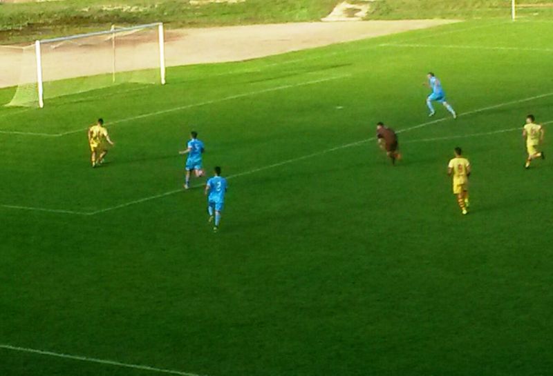 La squadra di Pettinicchio prova a reagire, anche se la partita fa registrare ritmi blandi. Dopo un colpo di testa senza pretese di Angarano, Botrugno si trova tutto solo davanti a Moschetto, che compie il miracolo ed evita lo 0-2.
