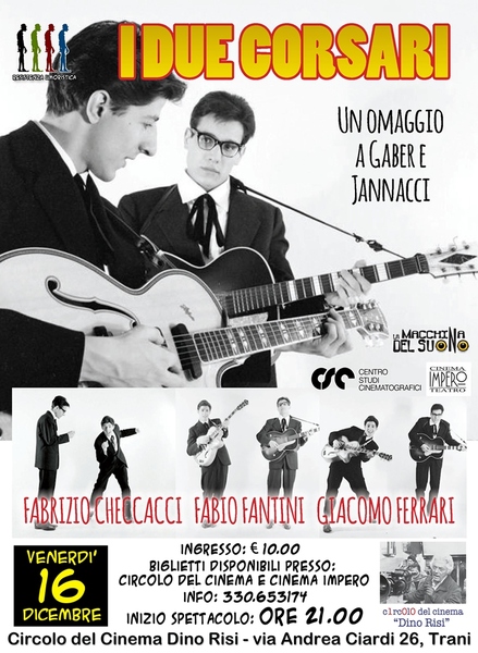 Nell'ambito della sezione "Resistenza umoristica" curata da Deborah M.Farina e Nicola Vicidomini e a chiusura della retrospettiva "Via Monte Rosa 84" il circolo del cinema Dino Risi organizza "I due corsari", una serata omaggio a Giorgio Gaber ed Enzo Jannacci.