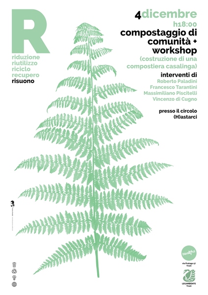 Oggi, domenica 4 dicembre, alle 18, presso la sede del circolo Arci di Trani in via Prologo 17, si terrà un incontro informativo ed esplicativo sull’argomento "Compostaggio di comunità", per capire che cos’è e a cosa serve. Questo è il primo di una serie di appuntamenti "green" pensati per i cittadini per comunicare in maniera pratica, e perché no, anche divertente, le tematiche ambientali. La prospettiva, con la quale questo ciclo di eventi è stato pensato, è quella di un approccio pratico per cercare una soluzione concreta alle problematiche ambientali che ci coinvolgono e delle quali si discute quotidianamente.