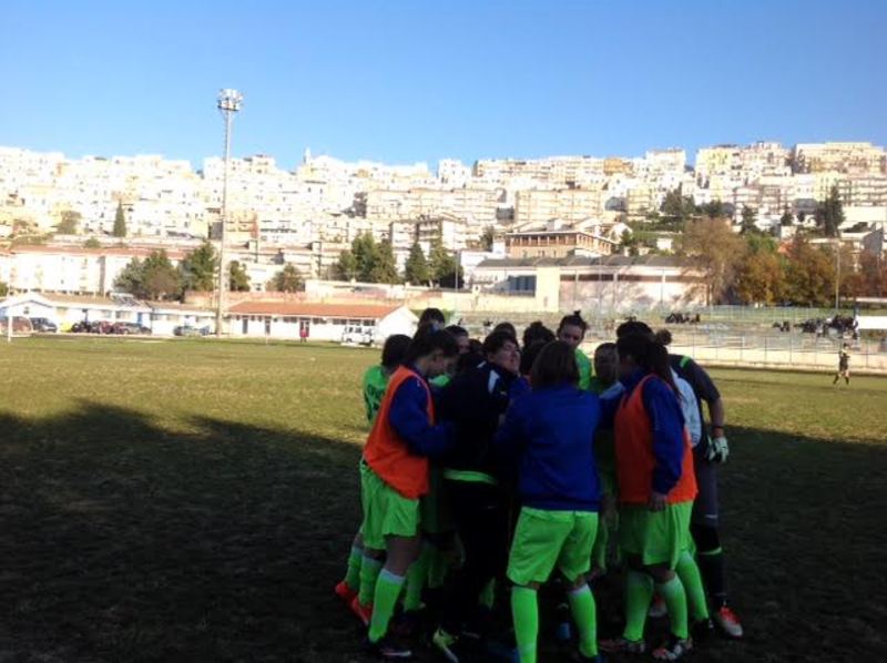 Sul neutro di Minervino, le biancazzurre sono sembrate sin dai primi minuti di gioco insidiose con una Iorio ed una Sgaramella molto ispirate, un tiro di testa di Volpe e due punizioni di Riccio che purtroppo non vengono realizzate da Cagiano prima e da Delvecchio poi. Al 42’ del primo tempo, è il Latina ad andare in vantaggio con rete di Tedesco.