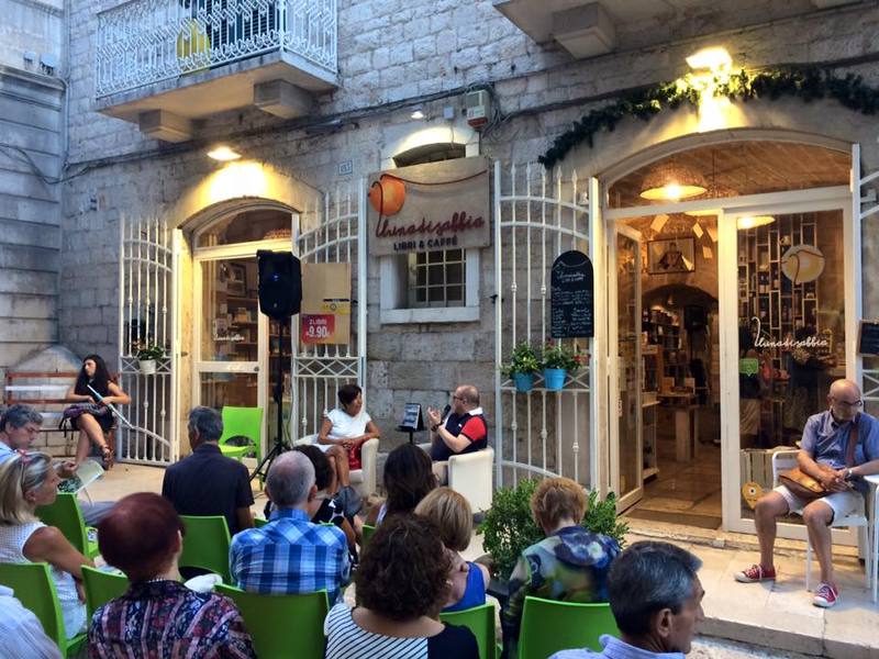 "Luna di sabbia" è un luogo nel quale partecipare ad incontri con scrittori, grazie alla rassegna “Scrittori nel tempo”, che diverse volte abbiamo seguito, e a quella estiva “Strani incontri”, ma anche assaporare un buon caffè o prodotti tipici locali e ascoltare buona musica. Un plauso va ai titolari della libreria, Alessandro Aruta e Alice Pastore, che svolgono con passione il loro lavoro ma anche, se ci è consentito, al curatore delle due rassegne e animatore culturale, il critico letterario Vito Santoro.