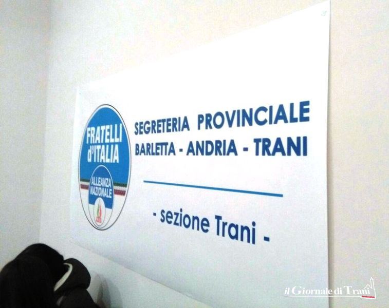 «È una sede al servizio della destra tranese, ma anche del nord barese. Un segnale che vogliamo dare alla destra della Bat e di Trani: Fratelli d'Italia c'è, sta crescendo ed è un punto fermo in quello che è il magma del centro-destra. Un punto di aggregazione in più per i cittadini tranesi ed i militanti di destra che, da tempo, non avevano più spazi a disposizione».