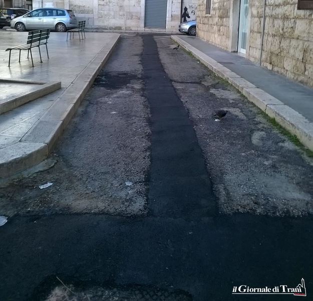 Tuttavia, i lavori sembrano dividersi in due modalità. In alcuni casi, come in via Umberto, all'intersezione rispettivamente con via Edoardo Fusco e via Marsala, il ripristino ha riguardato una porzione stradale più ampia o, addirittura, come nel caso di via Margherita di Borgogna, metà carreggiata (i canonici tre metri previsti dal vigente regolamento comunale). In altri, invece, come in via Radeprando da Trani o nella stradina che collega via Cittadella a via Madonna delle Grazie, le tracce lasciate dagli scavi sono state risistemate con una lunga striscia d'asfalto, larga all'incirca 1-1,5 metri.
