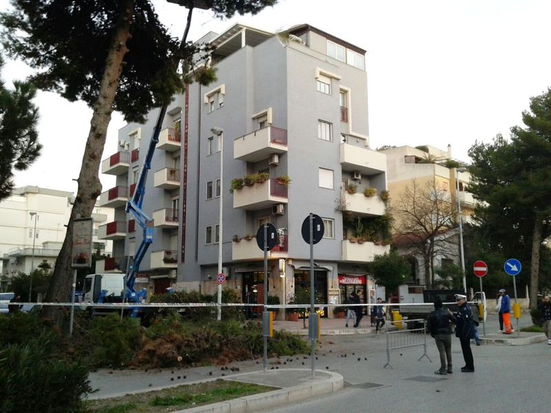 Mentre ieri il corso è stato chiuso dalle 10 alle 22, per l'ultima area a traffico limitato natalizia, con la realizzazione di numerosi eventi in zona, un altro corso, Alcide De Gasperi, nel pomeriggio è rimasto parzialmente ostruito per un intervento di messa in sicurezza urgente: da un pino, posto al'intersezione con via Bonomo, un ramo si era staccato e rischiava di piombare sulla strada da un momento all'altro.