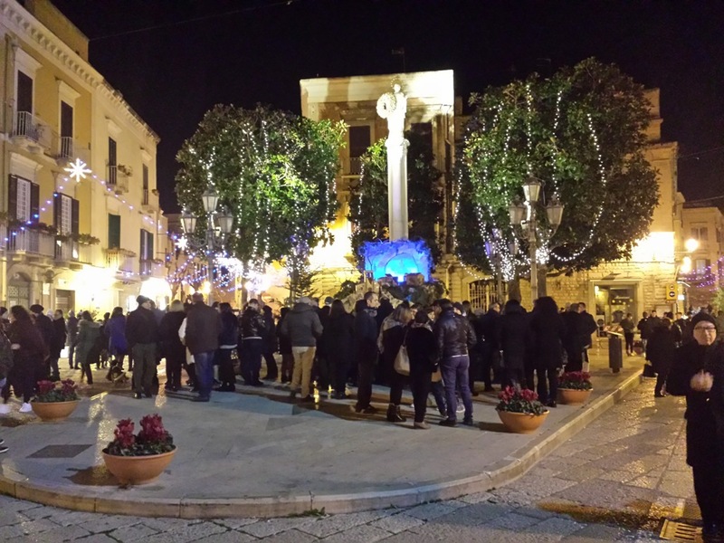 Numerosi i cittadini che continuano a visitare anche il presepe di piazza Libertà, realizzato da Carlo Scarcella all'esito dell'avviso pubblico emanato dal Comune di Trani.