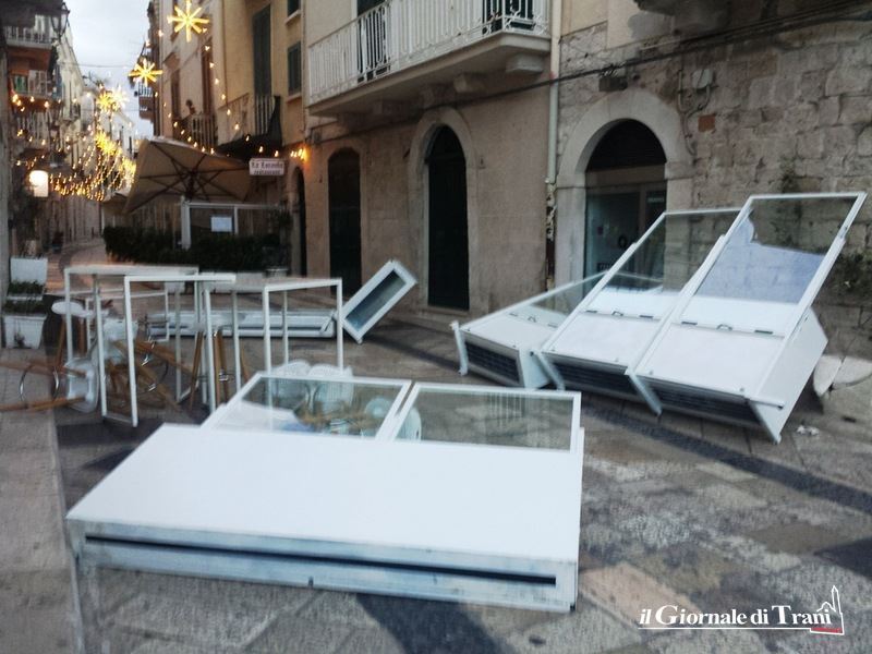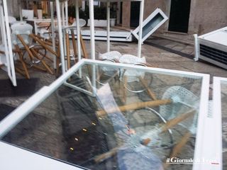 Montato, collaudato, inaugurato, volato via come un castello di carte. Il tutto nel giro di poco più di una settimana. È il gazebo di un'attività della ristorazione che ha sede in via Statuti Marittimi, angolo via Zanardelli.