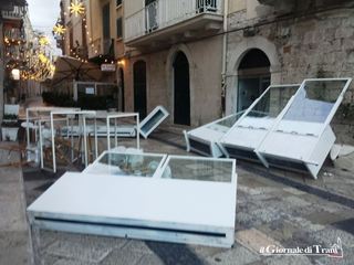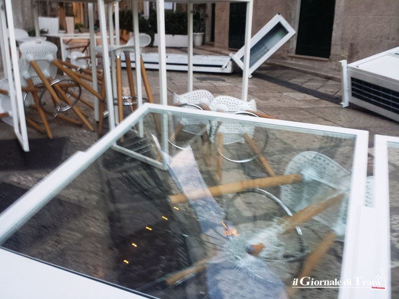 Il forte vento di questa notte, però, ha fatto volare via ogni parte della struttura, distruggendone vetrate, sedie, tavoli e probabilmente, anche altre parti del gazebo.