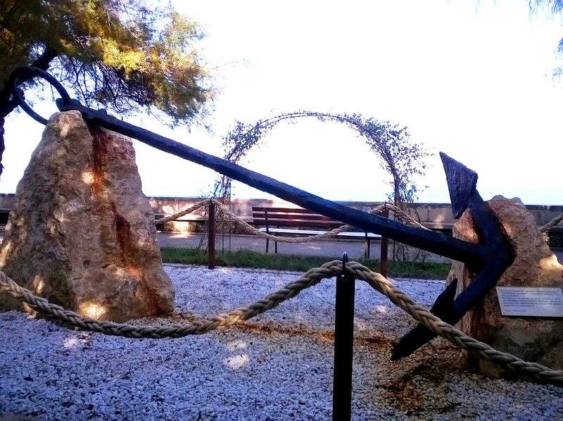 A qualche mese di distanza, siamo passati a verificare lo stato dell'ancora. Essa appare in buone condizioni, frutto, forse, di una recente pitturazione. La nota stonata, invece, è rappresentata dalla ruggine che ha ormai chiaramente intaccato il piedistallo su cui è appoggiata l'ancora, costituito da due blocchi di pietra, e la ghiaia sottostante.