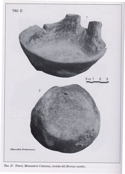 Bibliografia: Luigi Palmiotti, Il popolamento antico nella Puglia centrale, frequentazione antropica, cultura materiale, concettualità tra il VII e il II millennio a.C., Bisceglie 2004