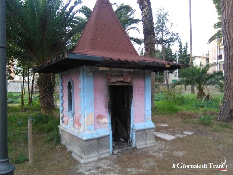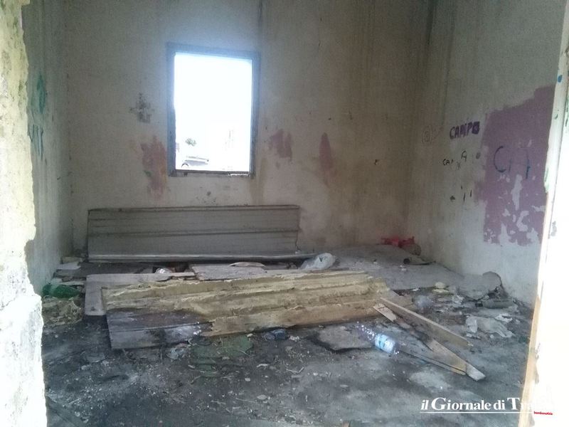 Giacciono per terra materiali di risulta e scarti. L’acqua di quella che dovrebbe essere una vasca ornamentale è completamente sporca. Nella “casetta del guardiano” permangono i resti dell’incendio che la interessò nel marzo del 2016, mentre nell’altra casetta qualcuno,magari un senza fissa dimora in cerca di riparo dal freddo di questi giorni, o più probabilmente qualcuno che ha bivaccato nella zona, ha lasciato i segni del proprio passaggio.