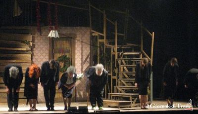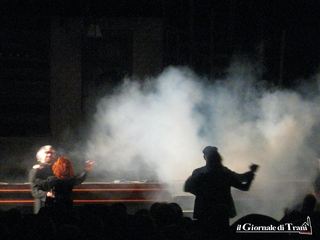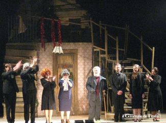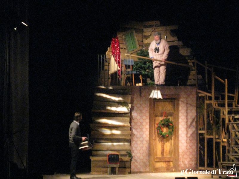 Alla fine dello spettacolo, e lo scriviamo a vantaggio dei, per fortuna pochi, spettatori che hanno lasciato la sala mentre gli attori salutavano il pubblico, Lello Arena ha ringraziato la compagnia per essere riuscita a portare il «miracolo del teatro in scena». Infatti, a causa del maltempo, la compagnia è arrivata in ritardo a Trani: l’incontro con gli attori previsto in biblioteca è stato annullato e il sipario si è aperto tardi. E l’altro miracolo compiuto dalla compagnia, e dal teatro, è stato quello di emozionare il pubblico.