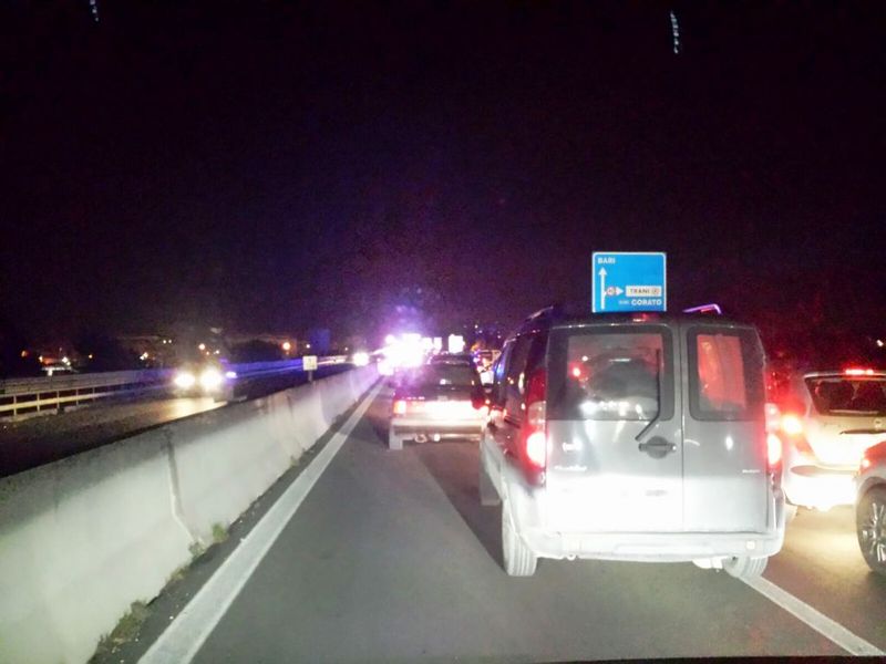 Incidente ieri sera, intorno alle 18, sulla strada statale 16 bis nel tratto compreso fra Trani Sant'Angelo e Trani centro, direzione sud.