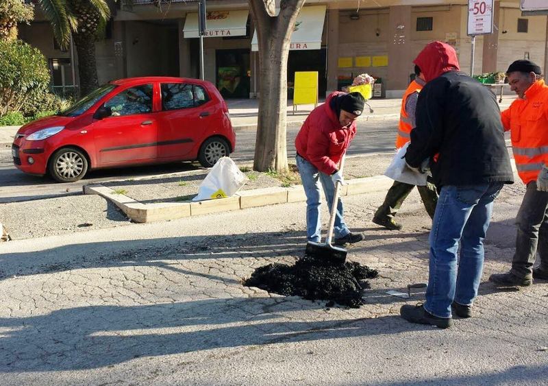 Oggi le squadre comunali sono impegnate nelle azioni di colmature delle buche su corso Imbrani (zona stazione fino all'intersezione con via Malcangi) e in via Statuti Marittimi (zona Darsena).