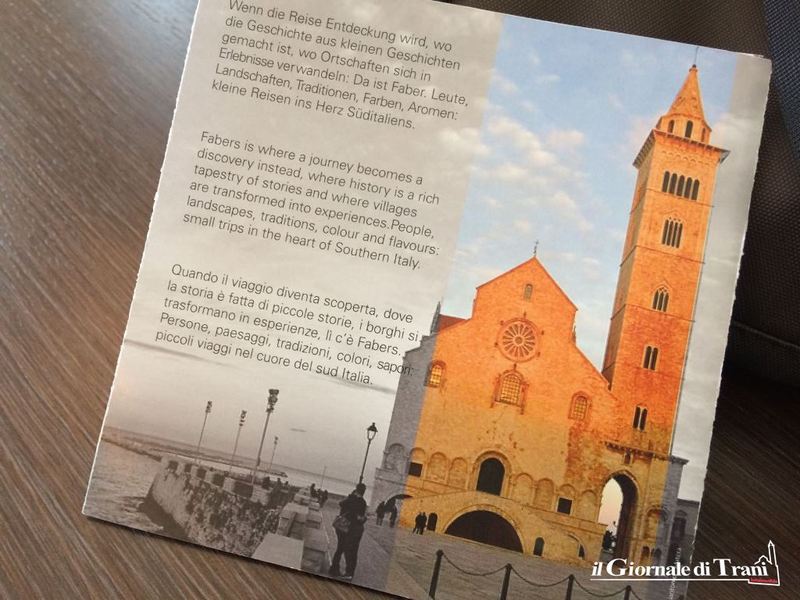 Sviluppare il turismo a Trani, sulla scorta dei confortanti risultati ottenuti durante la recente partecipazione alla Fiera internazionale del turismo, tenutasi a Zurigo: lo stand pugliese, accostato in un suggestivo percorso archeologico alla vicina Matera, ha registrato 38.000 visitatori in 3 giorni.E così Trani si prepara ad un progetto turistico innovativo, che nel 2018 la vedrà protagonista nel padiglione denominato“Apulien, VerbandderSchoenheit”, ovvero “Puglia, federazione della bellezza”.«Stiamo investendo molto, dal punto di vista economico no perché le nostre finanze non ce lo permettono, ma politico, per far capire che il vero sviluppo della nostra città non può che partire dal turismo» ha detto il sindaco, Amedeo Bottaro, nel corso di una conferenza stampa di presentazione del progetto.