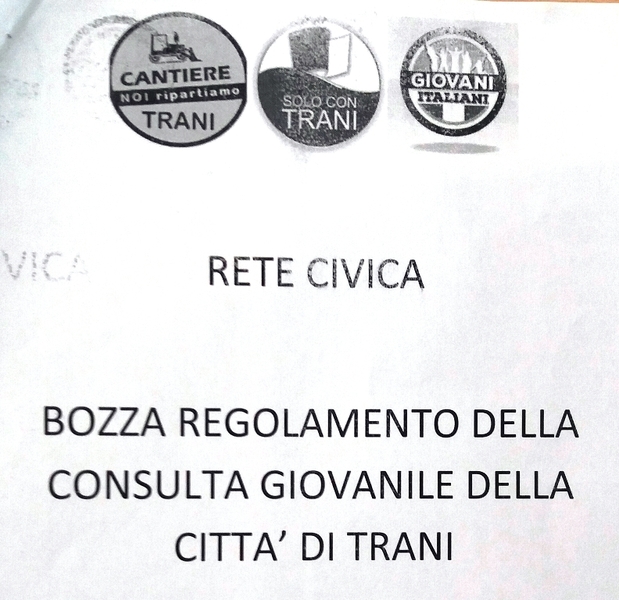 Tale organismo, previsto dallo Statuto comunale, è senz’altro uno strumento di coinvolgimento diretto nelle scelte strategiche sul futuro della nostra Trani. La nostra rete civica fa espresso invito all’amministrazione comunale a prendere in esame la bozza di regolamento da noi inviata a Palazzo di Città ed offre la diretta e fattiva collaborazione di Lorenzo Tedeschi, giovane studente e coordinatore cittadino di “Giovani Italiani”».