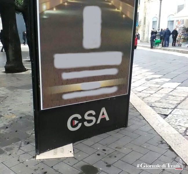 Adesso, però, quel pezzo di pietra - che nella pietra ha un'anima, quella della generosità di un tranese modello - è coperto da uno dei tanti impianti pubblicitari amovibili presenti in città.