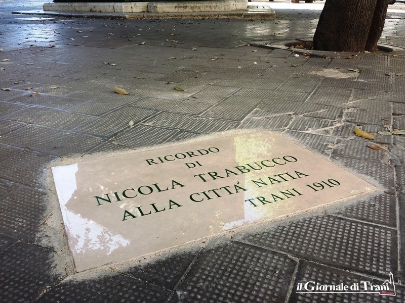 La storia di piazza della Repubblica è stata oscurata dalla superficiale collocazione di un totem pubblicitario sull'iscrizione lapidea che ricorda la donazione dell'intera pavimentazione del sito da parte del tranese, emigrato in Argentina, Nicola Trabucco, la cui bella vicenda personale è sempre presente sul nostro sito, grazie alla rubrica legata al libro «Trani, tante strade, tanta storia», di Giuseppe Giusto.