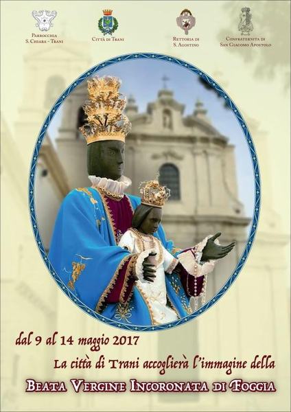 In occasione della permanenza a Trani della Vergine dell'Incoronata proseguirà fino ad oggi, domenica 14 maggio, presso la chiesa di sant’Agostino, dalle 9 alle 12.30 e dalle 17 alle 21, la mostra di sedici dipinti degli artisti Maria Serena Campanalunga, Nadia Maria Campanalunga, Giuseppe Colangelo, Fulvio Del Vecchio, Isabella Dragonetti, Marianna Schiaroli. L'esposizione è ispirata al mese mariano ed intitolata per questo “Mostra mariana”.