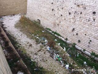 Lo avevamo già scritto in un precedente articolo: il fossato del Castello di Trani verte in una situazione di degrado. In quel nostro “viaggio” lungo la cinta muraria del castello avevamo descritto infatti una situazione incresciosa che riguarda direttamente l’amministrazione comunale. È infatti il Comune di Trani proprietario di quella zona.