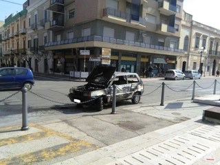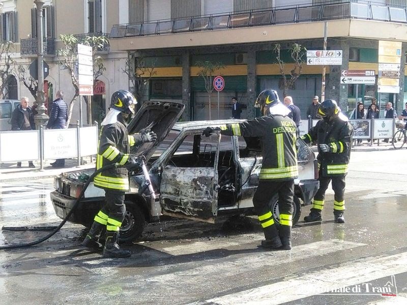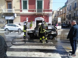 Non si registrano feriti, né intossicati, ma la donna che guidava l'auto è apparsa visibilmente spaventata e ha riferito di avere appena fatto in tempo a lasciare l'abitacolo.