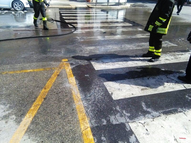 La Polizia locale ha chiuso il tratto di strada al traffico e provveduto ad un primo, parziale, soffocamento delle fiamme fino all'arrivo dei vigili del fuoco.