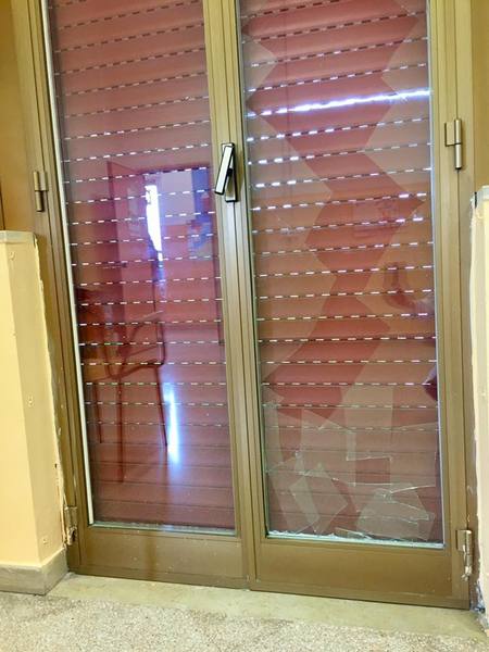 La scuola da diversi mesi non ha nemmeno una linea telefonica funzionante. I ladri sono entrati dalla porta di ingresso, che è rotta, così come la finestra della palestra, praticamente già da quando la scuola ha subito il primo furto.