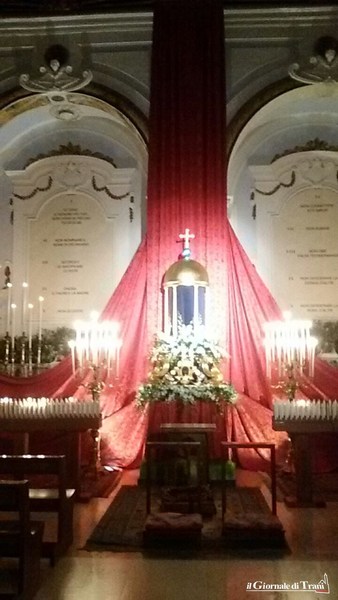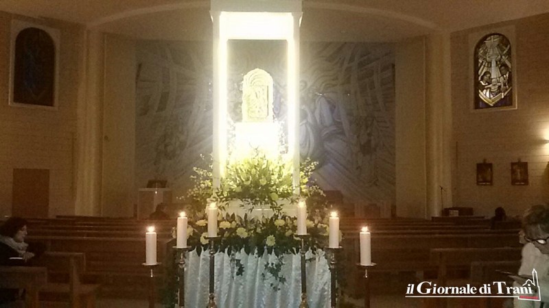 È stato particolarmente intenso il pellegrinaggio dei tranesi verso gli altari della reposizione del Santissimo e, fra i luoghi maggiormente presi d'assalto, non poteva mancare la chiesa del Miracolo eucaristico, in via Lagalante, presso la quale si sono formate lunghe code di cittadini in attesa di venerare il Sacramento esposto.