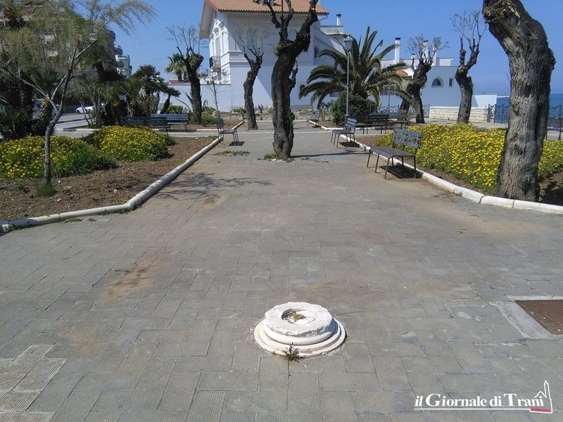 Le panchine si trovano ancora in quel deprecabile stato, e questo non è l’unico problema che riguarda il lungo marciapiede del Lungomare Cristoforo Colombo, sul quale sono presenti diverse buche e quel che resta di una fontana in pietra.