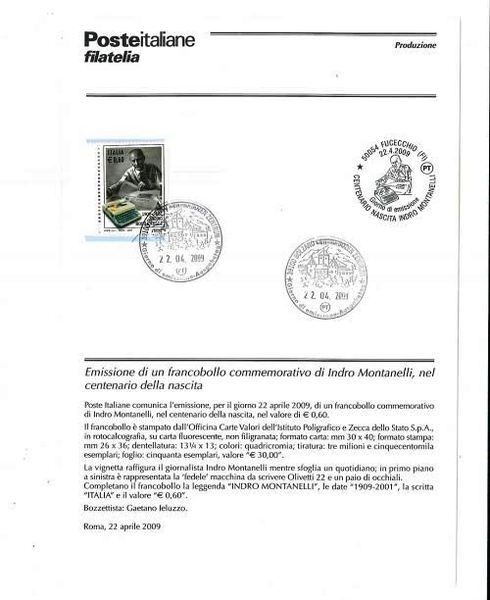 Insieme con le cartoline, anche i pochi francobolli, fuori commercio, presenti in Italia e raffiguranti Indro Montanelli, vedono una collocazione particolare nella giornata di festeggiamenti del Polo Museale: furono emessi il 22 aprile del 2009, in occasione del centenario della nascita di Montanelli.